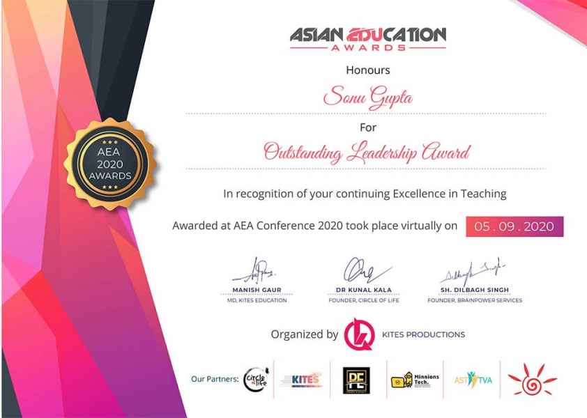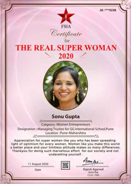 With GG International School as her dream project that has now turned synonymous to trust and quality education for 5000+ students and parents, Ms Gupta uses the school as a medium to inculcate good values (Gurukul Traditions) and encourage inquiry based learning amongst students. Her passion for sports and nutrition bagged the International-Leadership-Excellence-Award organised by Meccademia, UAE in the year 2019 for her phenomenal guidance and leadership skills in the field of Sports Education. She has also spearheaded – Say No to Obesity scheme in GGIS to encourage healthy physical development of each child.