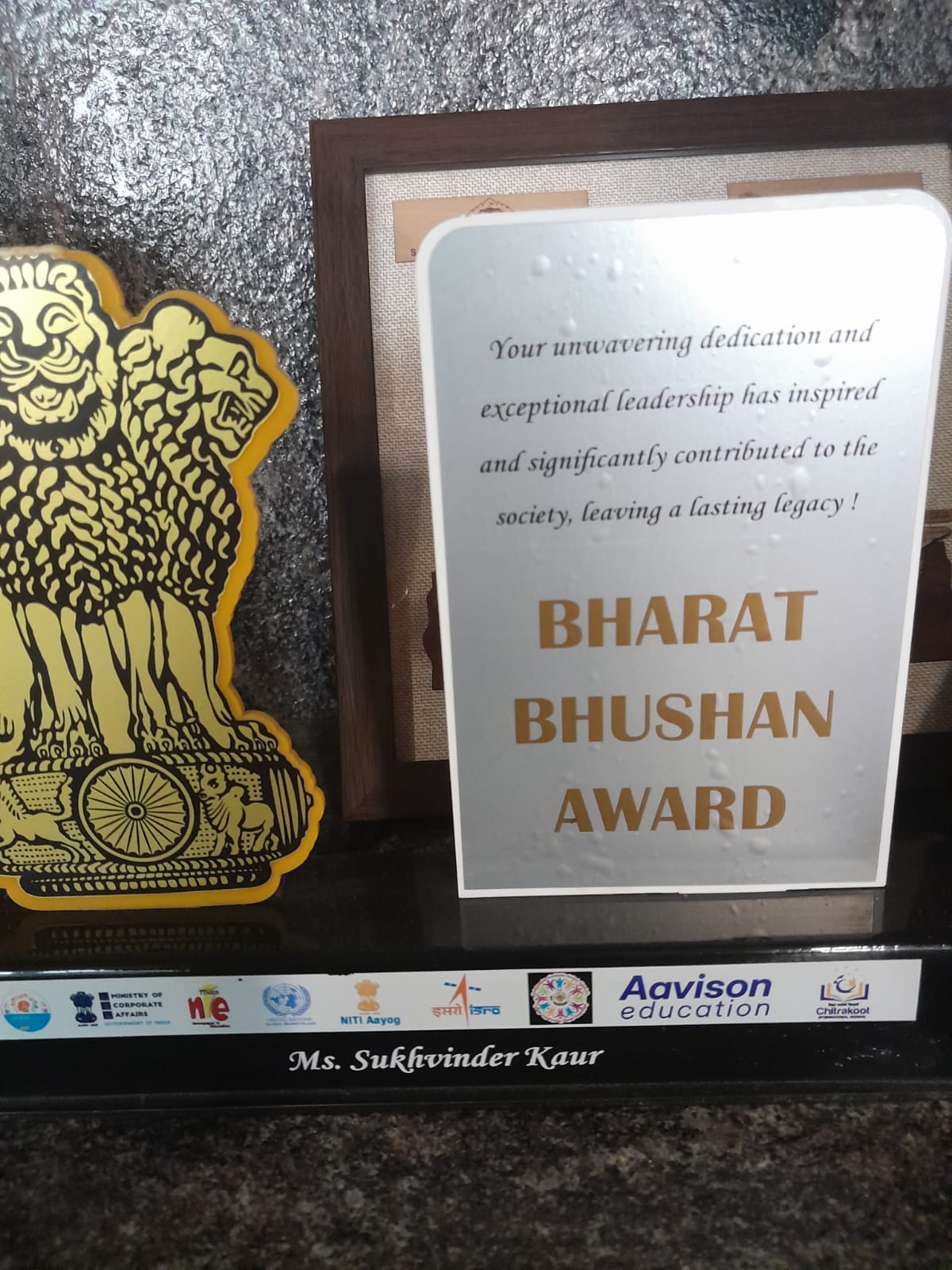 Bharat Bhushan Sanman 2024 Sukhvinder Ma'am - Principal GGIS Bavdhan.