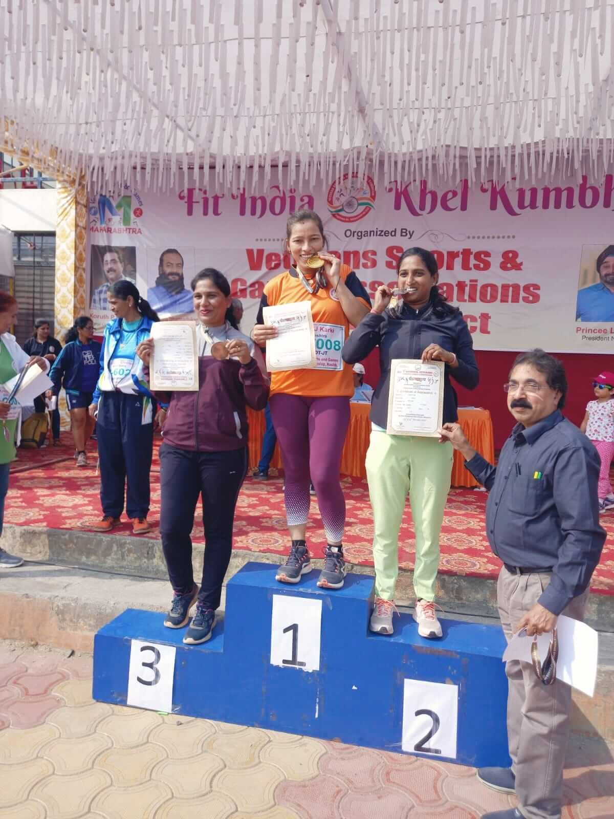 Mrs. Rupali Unde participated in the Masters Athletics Competition in Nasik, where she achieved the third-place position in the High Jump event.